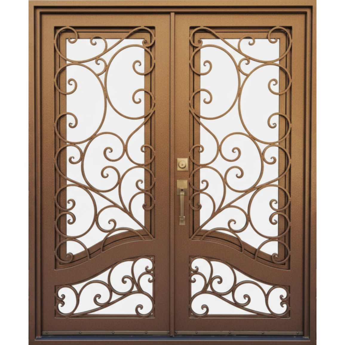 Each door is constructed from heavy-duty 14-gauge steel profiles, featuring intricate 5/8″ hand-forged scrollwork that adds a timeless artistic touch. Unlike standard iron doors, ours are engineered for thermal performance; the profiles are injected with high-quality polyurethane foam to ensure maximum insulation against heat and cold.