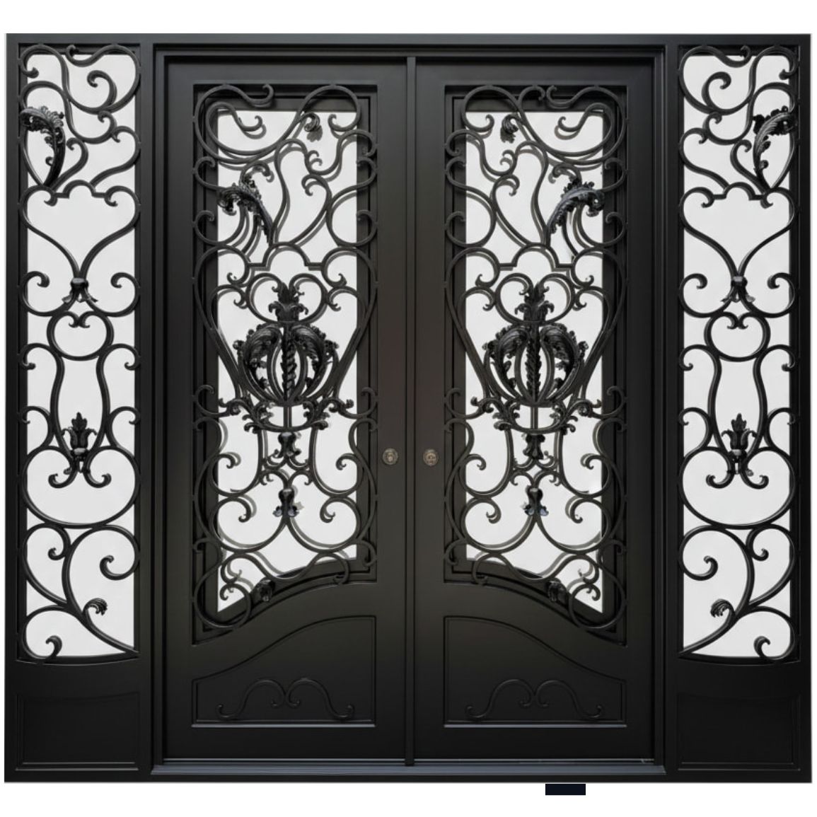 Each door is constructed from heavy-duty 14-gauge steel profiles, featuring intricate 5/8″ hand-forged scrollwork that adds a timeless artistic touch. Unlike standard iron doors, ours are engineered for thermal performance; the profiles are injected with high-quality polyurethane foam to ensure maximum insulation against heat and cold.